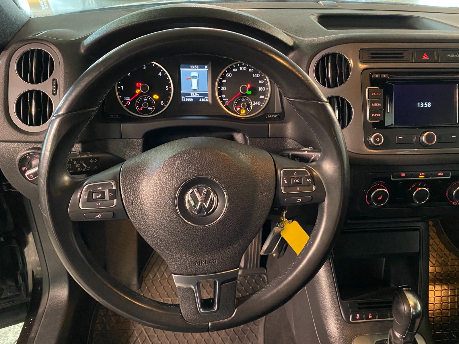 Denne VW Tiguan kombinerer stærk dieseløkonomi med høj komfort og avanceret sikkerhed. Med 2,0 TDi motoren på 140 hk, 7-trins DSG automatgearkasse og 4Motion firehjulstræk får du en SUV, der kører stabilt og sikkert under alle forhold – både i hverdagen og på de længere ture. Udstyrsniveauet er højt og byder bl.a. på automatisk nødassistent, skiltegenkendelse og træthedsregistrering, som øger sikkerheden markant. Kurvelys, lygtevasker, Xenonlygter med LED kørelys sikrer optimal sigtbarhed, mens elektrisk parkeringsbremse med Auto Hold giver ekstra komfort i tæt trafik. Kabinen fremstår rummelig og veludstyret med mørk loftbeklædning, delalcantaraindtræk, læderrat med multifunktion, navigation, bakkamera og parkeringssensor bag, så parkering og manøvrering bliver nemt og overskueligt. Komforten fuldendes med sædevarme, justerbar lændestøtte, højdejusterbart førersæde, fartpilot og aircondition. Derudover får du praktiske detaljer som aftageligt træk, el-sidespejle med varme, 4x el-ruder, håndfrit til mobil, CD/radio med AUX-tilslutning, ISOFIX og områdebelysning. En yderst veludstyret og alsidig SUV, der er ideel til både familie, pendling og fritid – klar til ny ejer. Aaftageligt træk, Automatisk nødassistent, skiltegenkendelse, træthedsregistrering, kurvelys, lygtevasker, fartpilot, aftageligt træk, elektrisk parkeringsbremse, auto hold, mørk loftbeklædning, delalcantaraindtræk, navigation, bakkamera, parkeringssensor (bag), LED kørelys, områdebelysning, multifunktionsrat, læderrat, justerbar lændestøtte, højdejust. førersæde, sædevarme, el-sidespejle m/varme, automatisk start/stop, aircondition, tågelygter, håndfrit til mobil, CD/radio, AUX tilslutning, 4x el-ruder, centrallås, udv. temp. måler, isofix og m.m.m. Bilen kan også købes kontant til 149.900,- Vi tager forbehold for tastfejl. Vi tager gerne din bil i bytte. Billig og hurtig finansiering Udvidet garanti i op til 36 mdr. #Privatleasing; aftalens længde; 12 mdr; Udbetaling; kr. 30.000; Nedskrevet værdi; kr. 55.000; Ydelse pr. måned; kr. 2.427; #Erhvervsleasing; Aftalens længde; 12 mdr; Udbetaling; kr. 24.000; Nedskrevet værdi; kr. 55.000; Ydelse pr. måned; kr. 1.941; #Splitleasing (20/80); Aftalens længde; 12 mdr;; Udbetaling; kr. 4.800; kr. 19.200; Ydelse pr. måned; kr. 628; kr. 2.513; Nedskrevet værdi efter 12 mdr.; kr. 55.000;,
